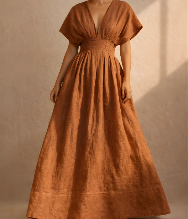 A softly structured linen dress designed for comfort and presence.