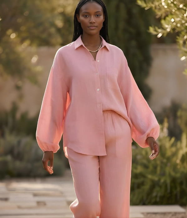 The second I laid eyes on this gorgeously stunning set, I knew they were coming home with me! Every piece is a vibe—the color, the way they look, the way they feel… pure magic. The fabric? Omg….High-quality linen that feels as good as it looks. I grabbed all three pieces: the effortlessly cool button-up long sleeve shirt, the flirty off-one or both-shoulder waist length top and the flowy wide-leg pants that make you want to dance. Seriously, each piece is a showstopper! The price totally matches the quality—worth every coin. If you’re thinking about it—stop. Just get them. These are totally MUST-HAVES!